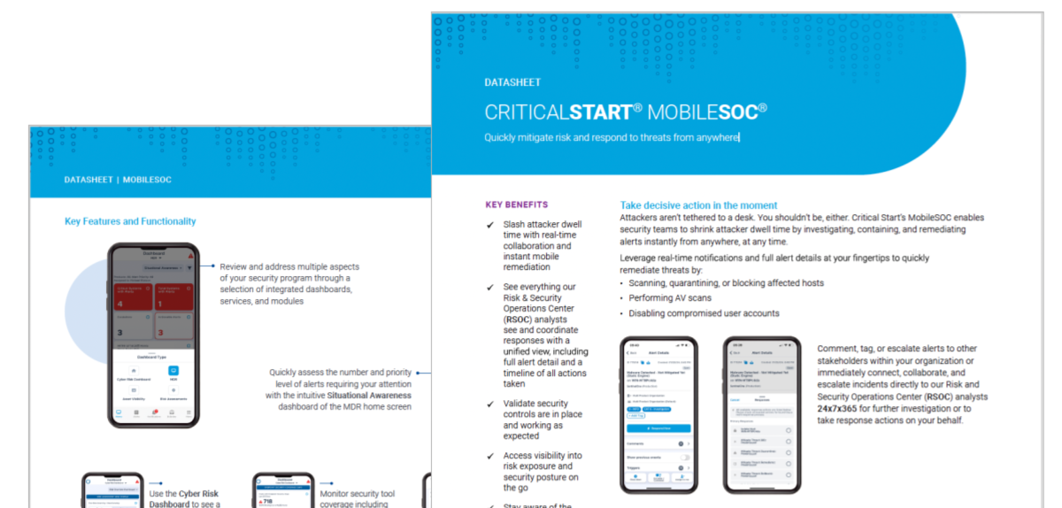 Critical Start’s Android and iOS mobile app enables security teams to increase productivity, streamline communication, and shrink attacker dwell time by allowing them to investigate, contain, and remediate alerts instantly from anywhere, at any time.