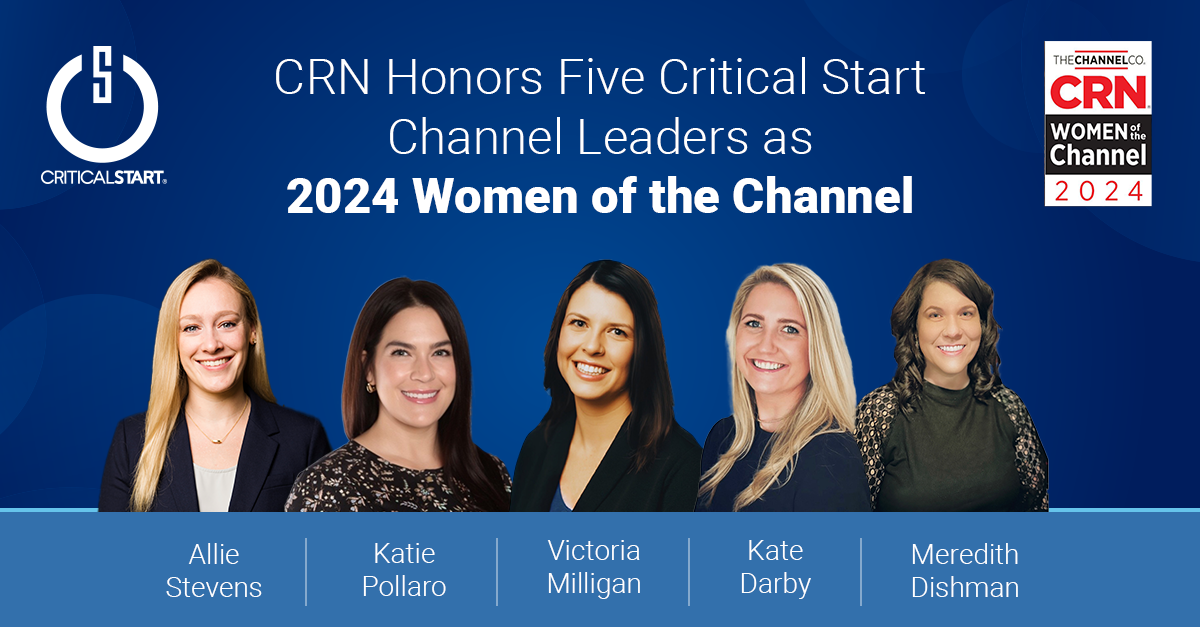 PLANO,TX, May 14, 2024 – Today, Critical Start, a leading provider of Managed Detection and Response (MDR) cybersecurity solutions and pioneer of Managed Cyber Risk Reduction (MCRR), announced that five of its channel leaders have been named to CRN’s Women of the Channel List for 2024: Allie Stevens, senior director of channel and field Marketing, Meredith Dishman, director of channels, Kate Darby, channel and field marketing manager, Katie Pollaro, senior channel marketing manager, and Victoria Milligan, channel and field marketing manager – East.