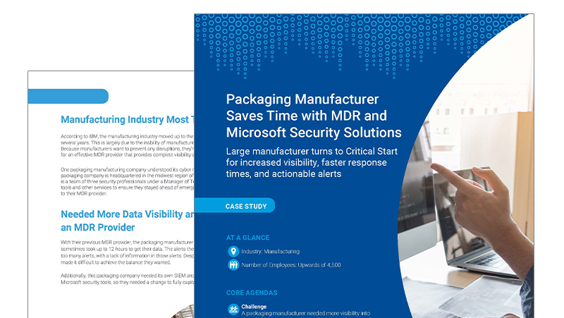 A packaging manufacturer needed more visibility into data, faster response times, and their own Security Information and Event Management (SIEM) capabilities. Since they already identified the need for their own SIEM and wanted to go deeper with Microsoft security tools, finding a provider with Microsoft expertise was crucial. That’s where Critical Start came in.