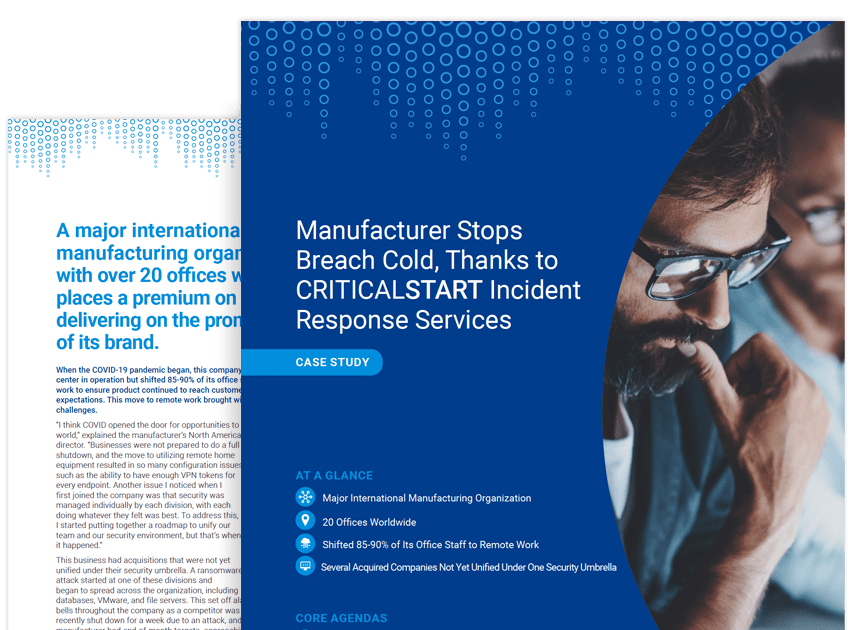 Manufacturer Stops Breach Cold, Thanks to Critical Start Incident Response Services